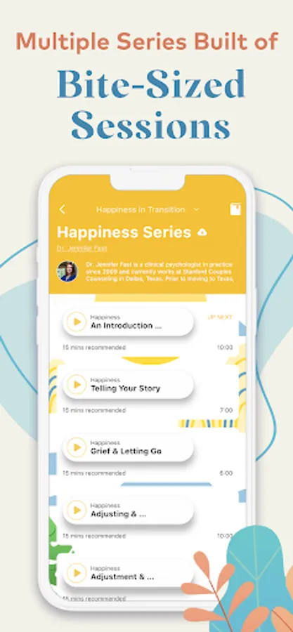 Each session is ten minutes long and will leave you with the tools to understand and process your emotions in healthier and more productive ways. Go through the sessions at your own pace from the comfort of wherever you are; no need to schedule appointments or visit an office. With new series uploaded monthly, there will always be something to help you along the next steps on your path.