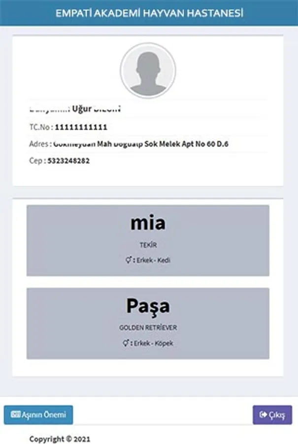 Empati Akademi Animal Hospital patient / vaccine follow-up program (Only registered patients in our clinic can use it).