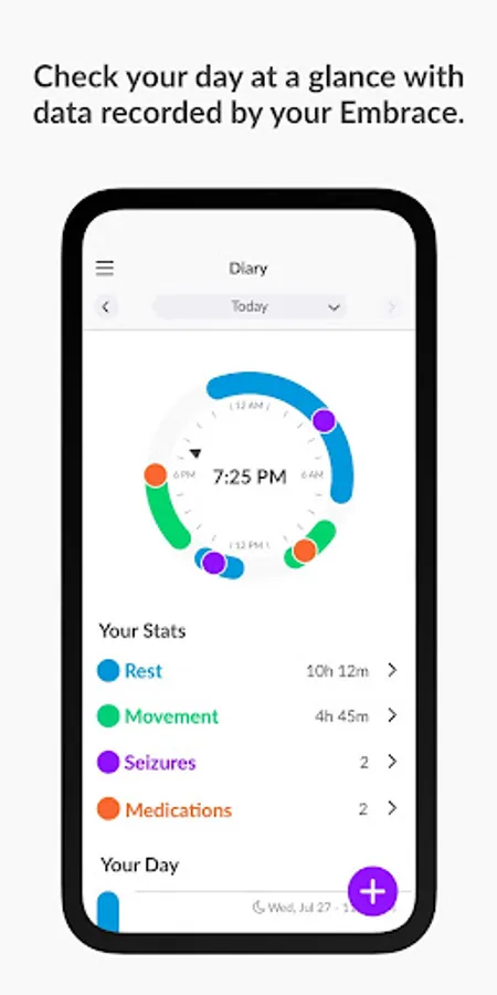 The Mate App visualizes Embrace data, enabling you to view your day at a glance. Set medication reminders and quickly get a holistic view of your daily regime including how much you’re moving and resting, your medication adherence, and any seizures that may have occurred.