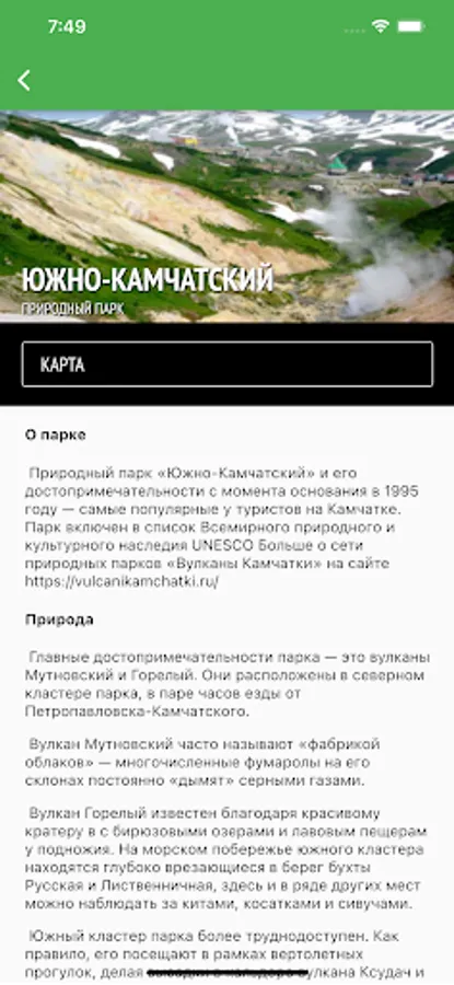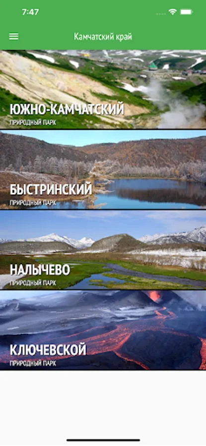 The mobile application "Green Button" is a navigation through the protected areas of Russia. The application has all the useful information about reserves, national parks that are connected to our platform.