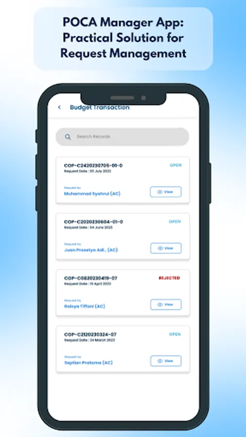 POCA Manager is a special application for employees with certain roles at PT Poca Jaringan Solusi. This application allows users to process and monitor various requests submitted by subordinates. With POCA Manager, employees can easily manage and follow up on requests from work teams, increasing efficiency and productivity in managing daily tasks
