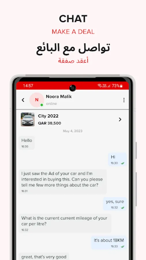 • Chat privately with sellers, and negotiate prices safely.