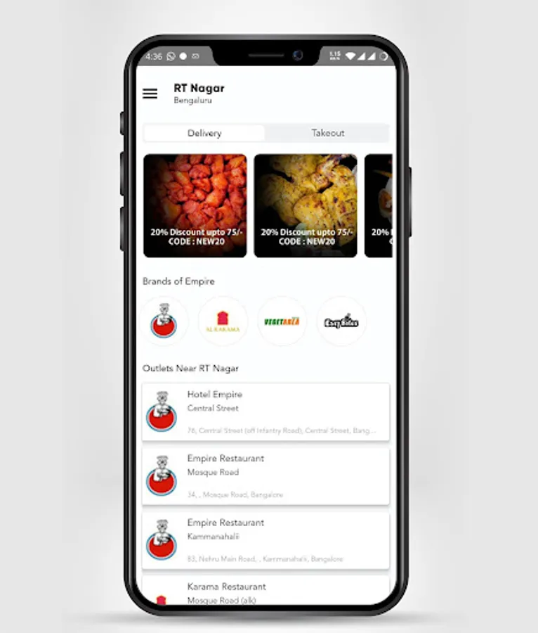 Hotel Empire was once a family partnership business concern but now has transformed to a Private Limited Company. It is one of the leading chains of non-vegetarian restaurants, hotels and serviced apartments spread over different parts of Bangalore, India. Nicknamed as the Taste of Bangalore, the restaurants of Hotel Empire group are the most sought after eateries in the Garden City, particularly by the late night crowd. It's mouthwatering dishes include the Empire special chicken kebab, biriyani, coin parotta, ghee rice and other Indian cuisines.