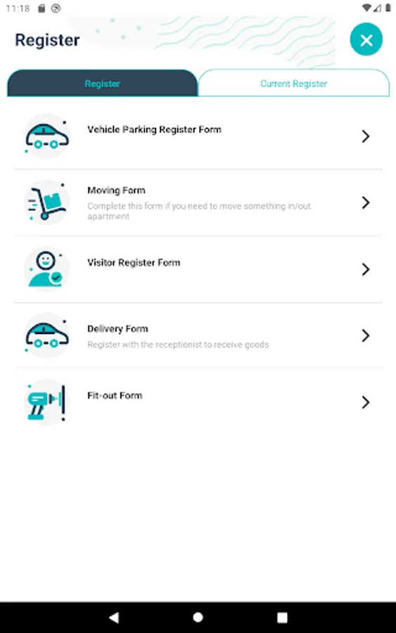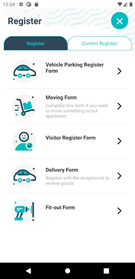 • Register where residents can do paperless register for parking, visitors, delivery and related
