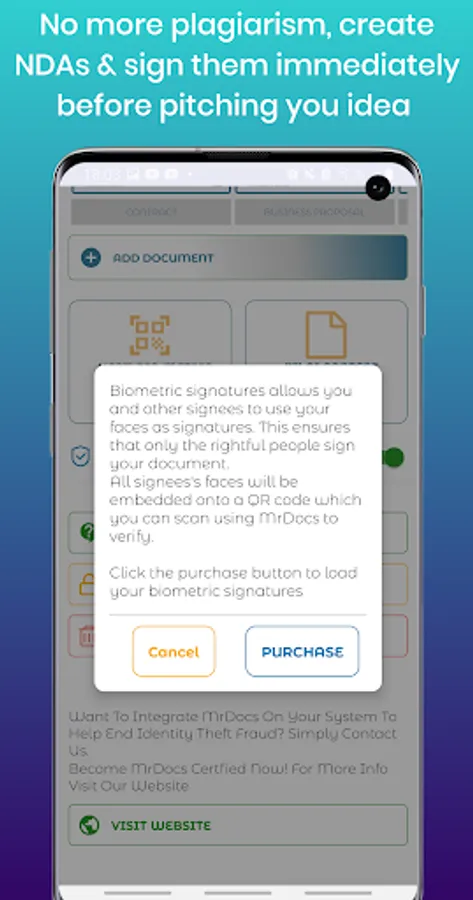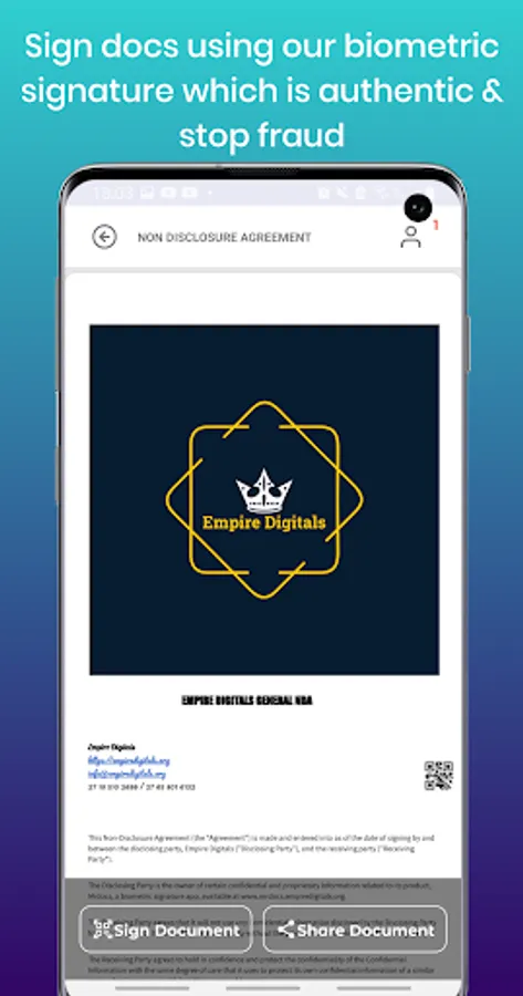 Introducing the ultimate business solution, our cutting-edge app streamlines and simplifies the process of document signing, while also providing an added layer of security to prevent fraud. With just a few clicks, you can easily upload any document you need to sign, take a quick selfie, and have your signature embedded onto a QR code and attached to the document. This biometric signature feature not only adds an extra layer of security but also saves you time and effort. And to view all signees, simply scan the document using the app, it will show all the signees, making it easy to keep track of who has signed the document.