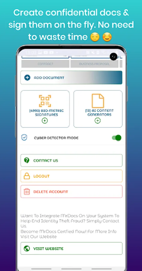 Don't let the fear of fraud or the time-consuming process of document signing hold you back from growing your business. Join the revolution of modern and efficient business practices with our app. Invest in the future of your business, and sign up today!"