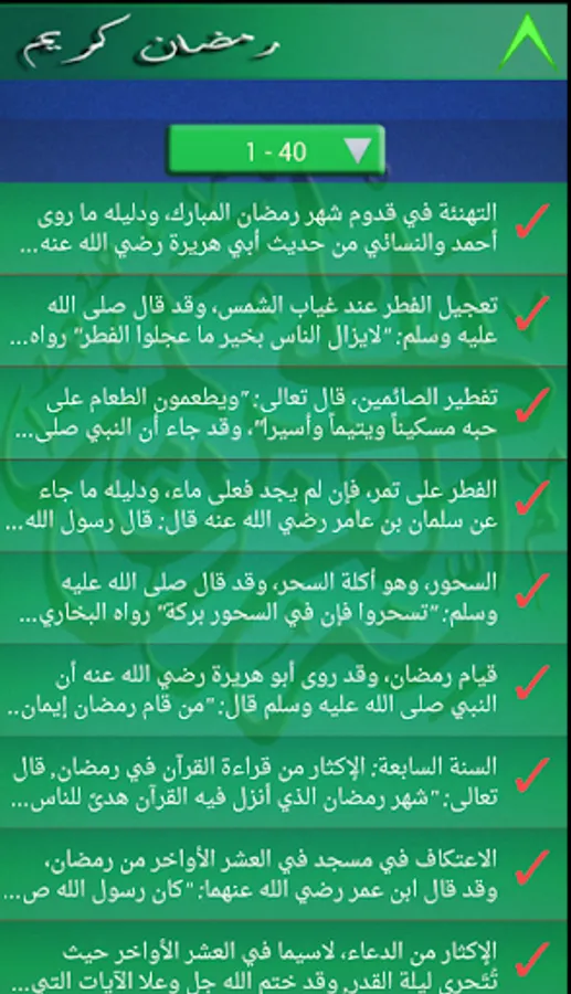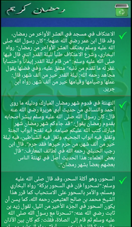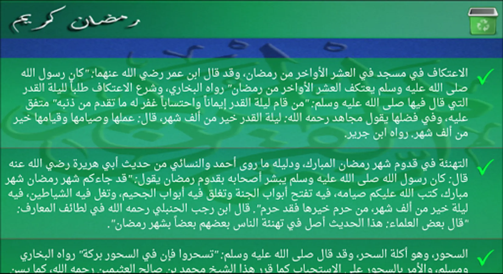 The application contains the most important Sunan beloved Prophet peace be upon him in the holy month of Ramadan.