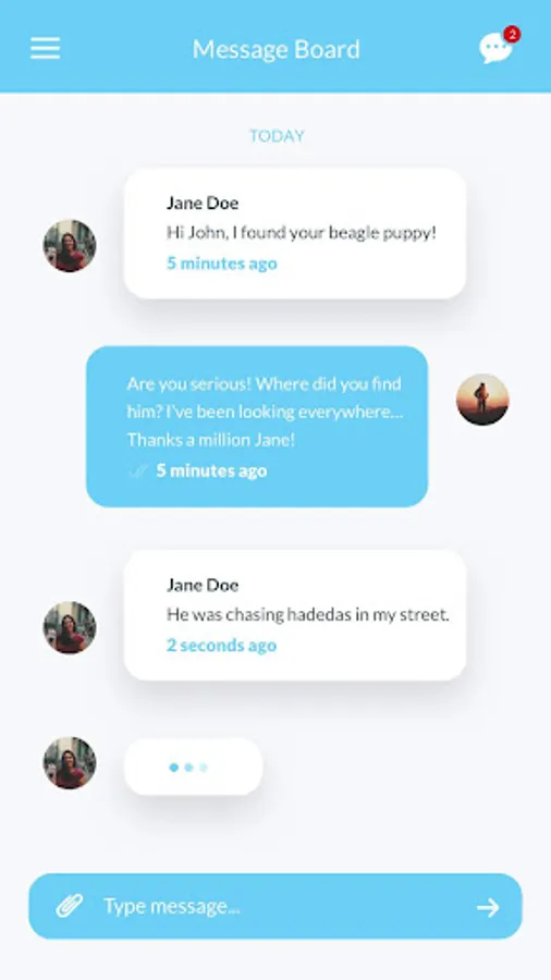 The messaging functionality will allow app users to message each other privately, in order to identify pets and arrange meet-up and collection.
