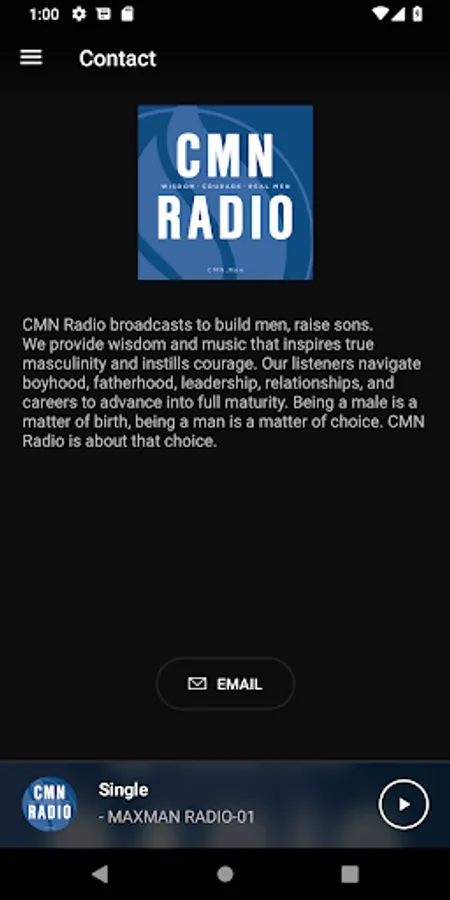 CMN Radio broadcasts to build men, raise sons. We provide wisdom and music that inspires true masculinity and instills courage. Our listeners navigate boyhood, fatherhood, leadership, relationships, and careers to advance into full maturity. Being a male is a matter of birth, being a man is a matter of choice. CMN Radio is about that choice.