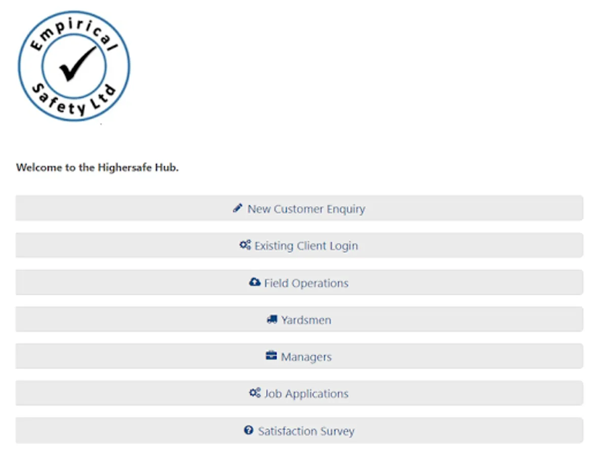 Empirical Safety offer a bespoke modular Health & Safety Management System (HSMS) tailored to individual clients. Example modules include online risk assesment and method statement (RAMS) deployment. Toolbox talk and safety alert cascade. Equipment or vehicle pre-use checksheet. Permit to work / high risk permit management. Autonomous check sheets and more.