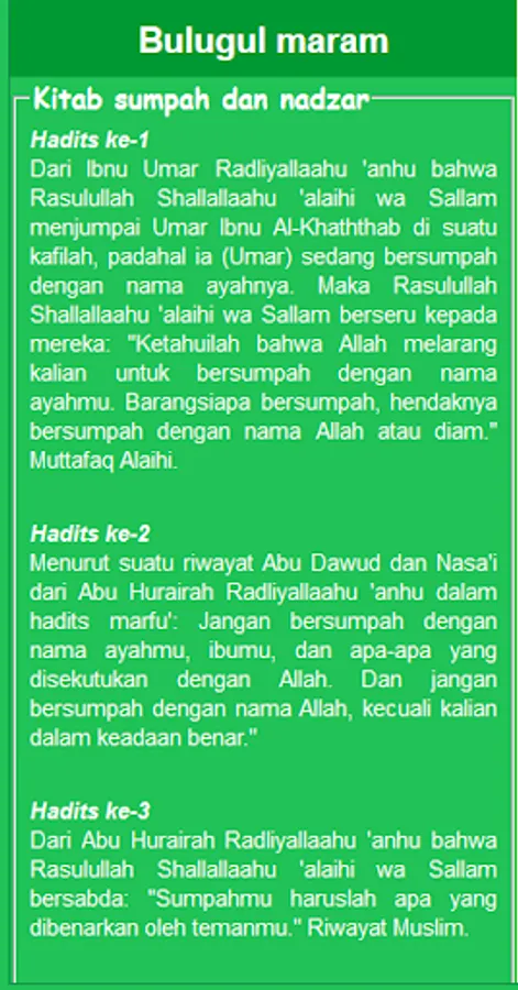 hopefully Bulughul Maram & translation application can provide benefits for all of us, please give us advice in the development process, please send it via email us at: EmpirisStudio@gmail.com