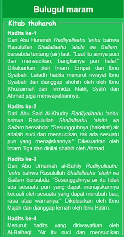 Applications Bulugh al-Maram is one book that was popular in the Ahle Sunnah wal Jamaah, which includes the legal aspects of the life of every Muslim.