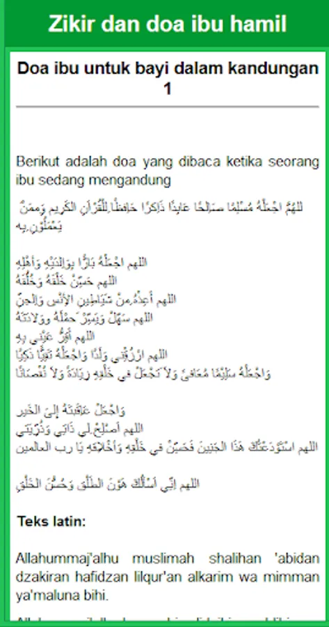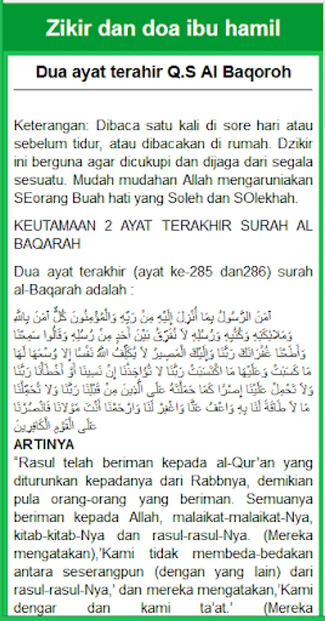 Application wird pregnant women contains prayers relievers depressed, anxious, depressed, sad and afraid while waiting for the baby. There are also prayers were being said when experiencing difficulties in childbirth, to protect themselves from evil demons and dangers, as well as from the hypnotic and evil people mendengkinya. Therefore, diwasiatkan to always read every day in the morning and evening, when there is a sense of worry and when subjected to critical periods during pregnancy and childbirth.