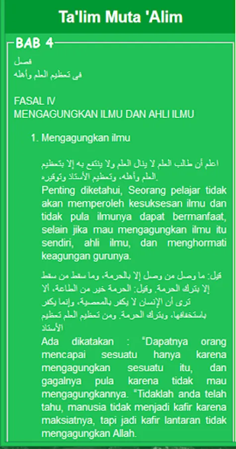 failitas in applications Ta'lim Muta 'Alim + Translations are as follows;