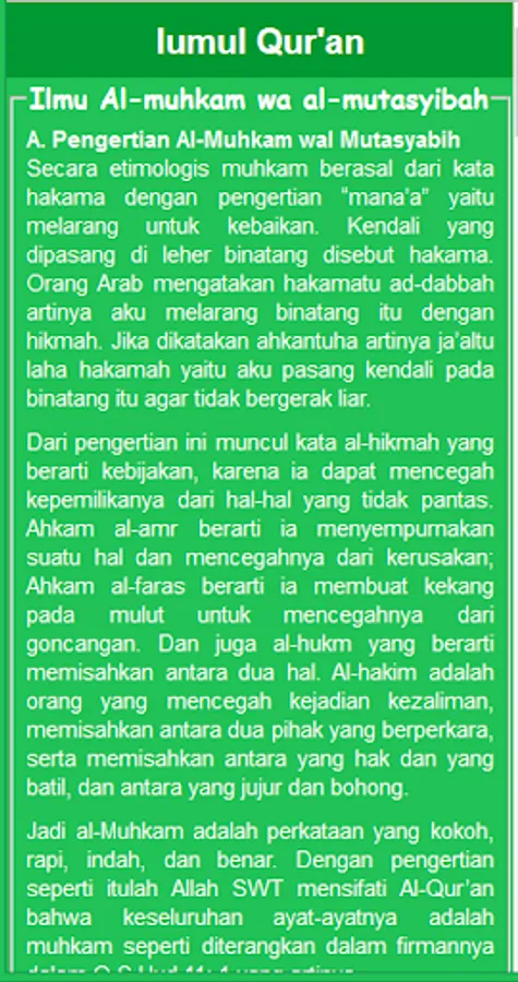 Applications Ulumul Qur'an is an application that provides lessons for studying the Qur'an, may have benefits. aminn.