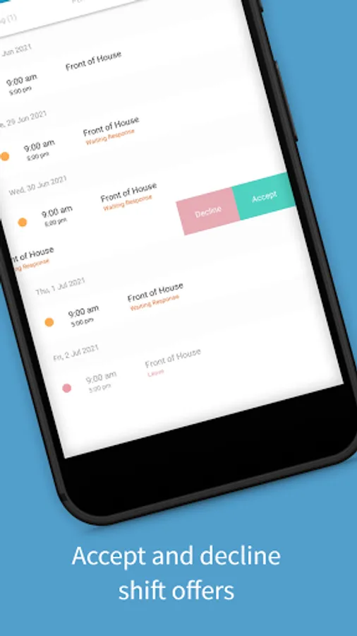 With EmpLive on Mobile, you can view your upcoming rosters, accept/decline offered shifts, swap shifts, post timesheets, submit leave requests, view your leave balances, manage your unavailability and clock in/out of your shifts on the go.