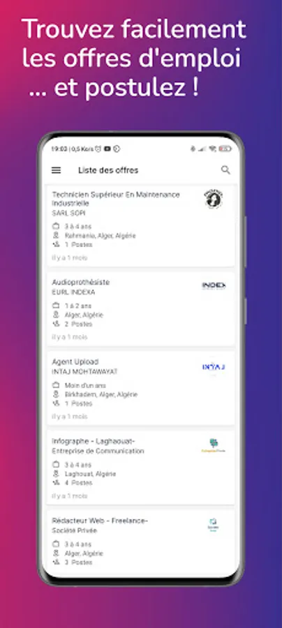 The Emploi Partner application allows you to be alerted in real time to the latest professional opportunities. Wherever you are, find all the job offers that match your profile on your mobile.
