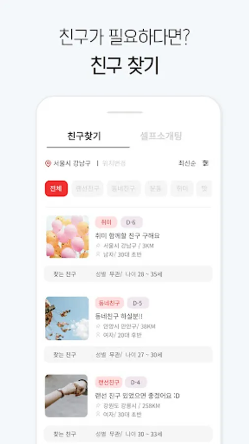 Through the chat function, you can talk with the person you want first and become friends if you like each other.