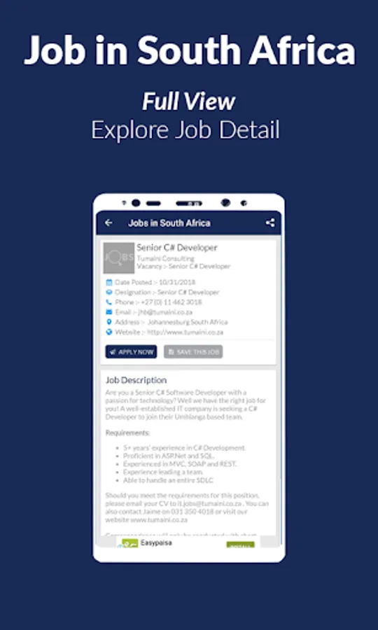 Download Jobs In South Africa today and get your dream job. If you are an employer, use Jobs In South Africa to get hundreds of qualified and interested employees at the click of a button!