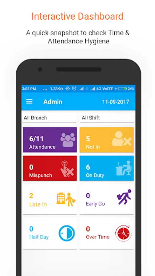 * Interactive Dashboard - View a live list of employees who are present, late or early for work on multiple locations. All data is sent and received in real time giving live data attendance records from multiple location to a centralized system. Send real-time auto-generated messages to employees.