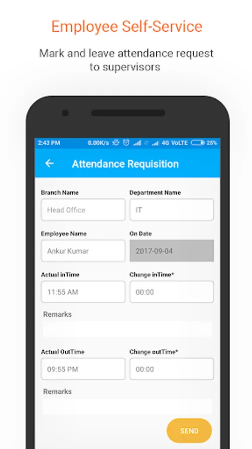 * Employee Self-Service - Let employees help themselves to the information they need, update their own details, submit attendance and leave requests online. Empower your employees to get digitized, to take benefit of technology for their own benefit.