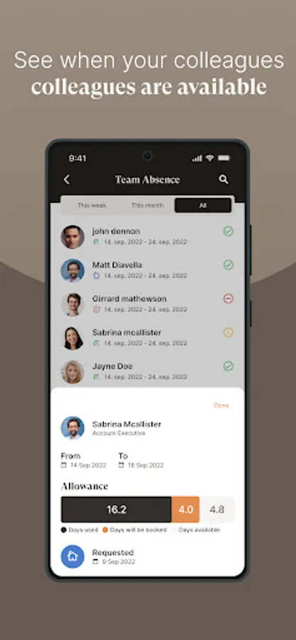 As an Emply customer, your employees get free access to our app. Here they can easily keep track of tasks and record holidays/absences at home or on the move.