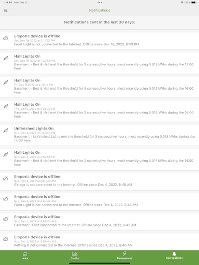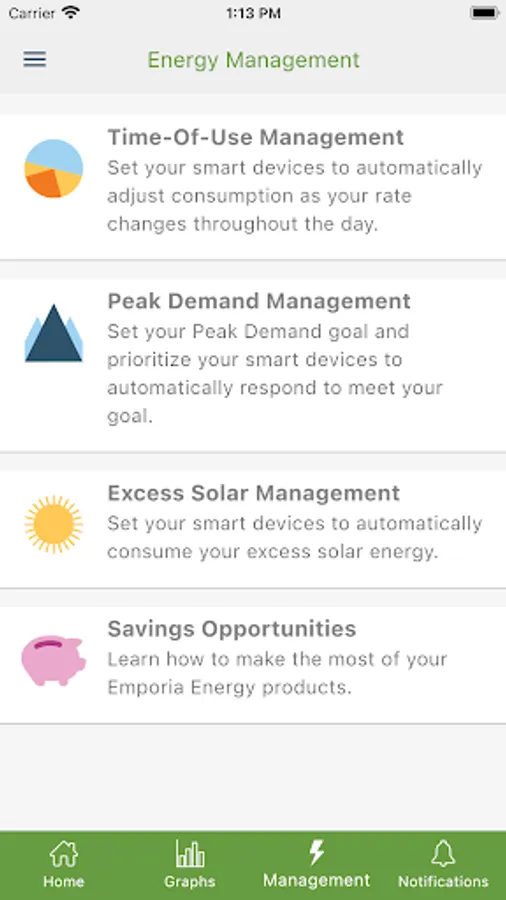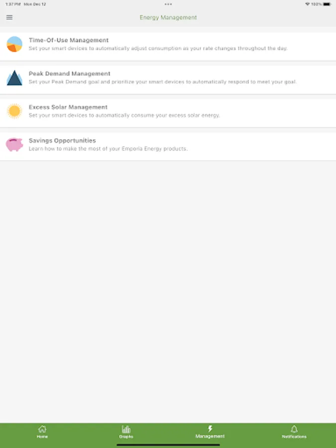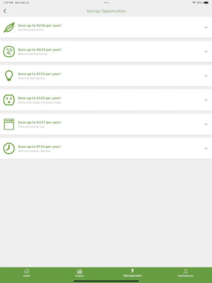 The Emporia app provides clear, meaningful energy use analysis and actionable recommendations that help homeowners save money, conserve energy, and reduce carbon. We analyze your usage patterns and then provide insights into your energy use, along with powerful opportunities to make your home more energy efficient.