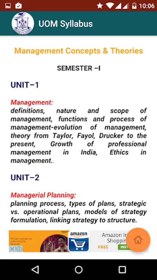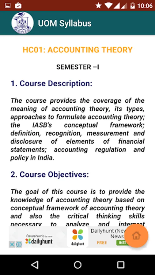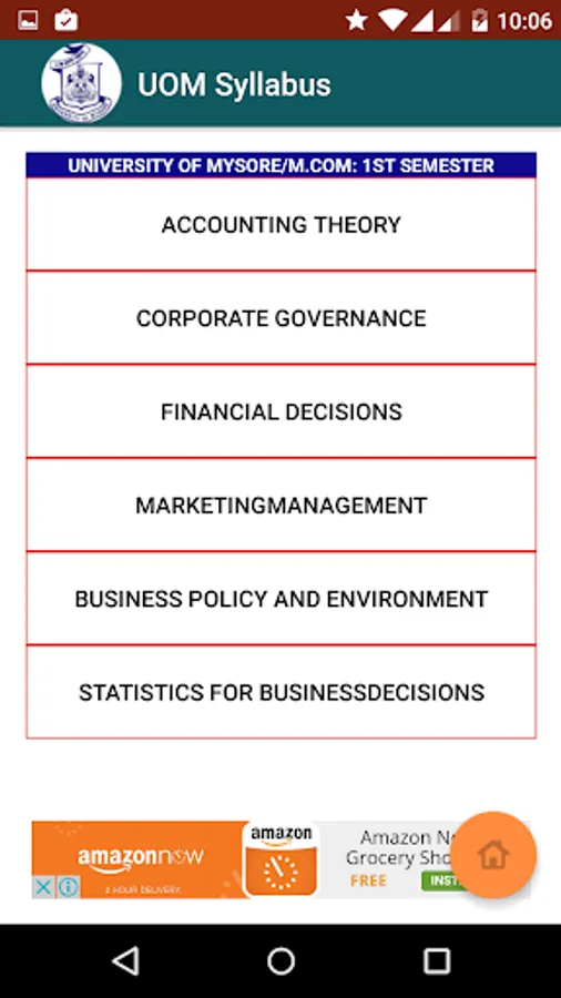 UOM MBA and MCOM Syllabus is an android app developed by Emporis Software Solutions to make the academic syllabus for University of Mysore students.