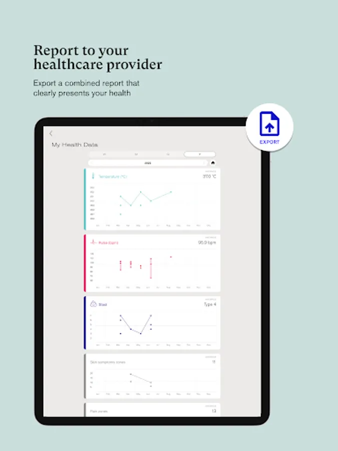When you register health data and symptoms in the app, you can export a report, that summarises how you’ve been and is helpful in conversations with your healthcare provider.