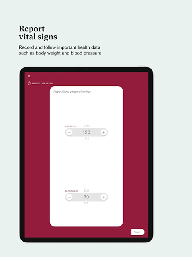 In the app, you have everything gathered in one place, and always at hand. It also helps your communication with your family as they too can partake the information in the app, to better understand your situation and your health.