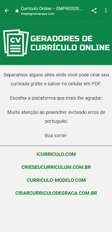 We are not affiliated with any companies or HRs. We only inform in an organized and daily manner the vacancies that are available on websites, fanpages, WhatsApp groups and digital and printed newspapers.