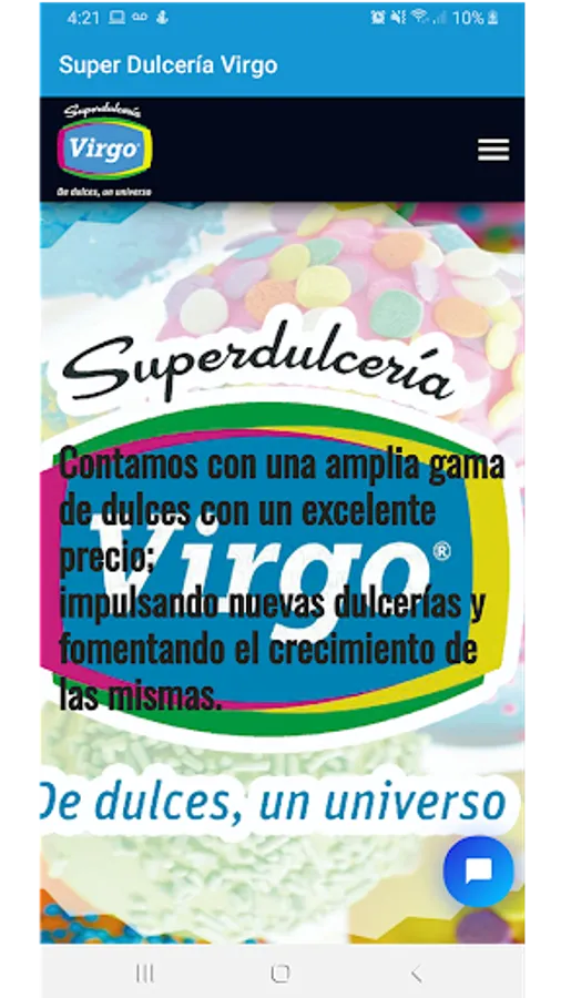 Superdulcería Virgo App, is a tool aimed at our clients so that they know our assortment of merchandise in sweets and confectionery and can place their orders.