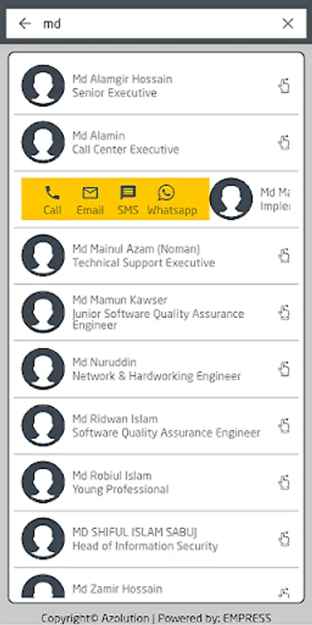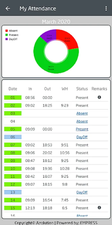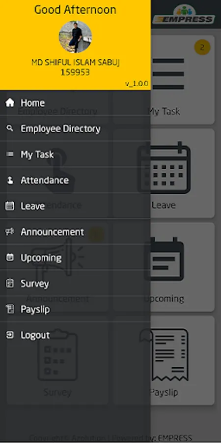 Empress Lite is the lite (mobile app) version of EMPRESS. “Employee Productivity Escalation System (Empress)” is a multi-company/location supported Human Resource Information System (HRIS) to manage employees and their daily activities which is more than HR & Payroll System, developed by Azolution Software & Engineers Ltd. To save time and to improve the Human Resource Management, Empress v5.5 is a very innovative solution to manage Employee Record, Attendance, Movement, Leave, Conveyance, Payroll, Performance, Recruitment, etc. very efficiently. The resource utilization can be improved by more than 50% and save management time more than half by implementing Empress. Experience the ultimate power of Human Resource & Payroll Software.