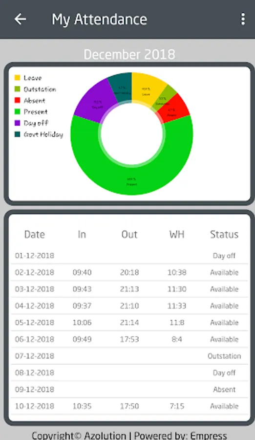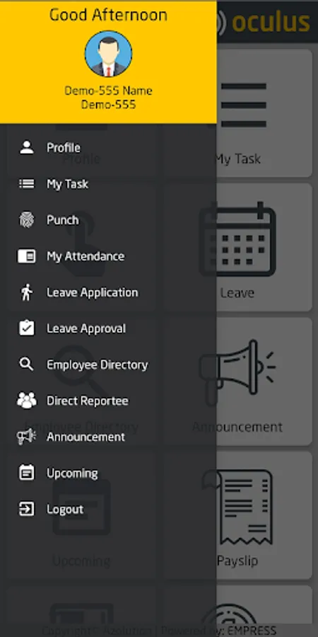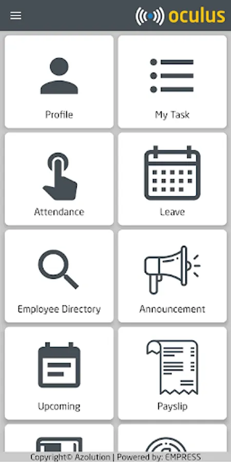 oculus HRIS is the lite (mobile app) version of EMPRESS. “Employee Productivity Escalation System (Empress)” is a multi-company/location supported Human Resource Information System (HRIS) to manage employees and their daily activities which is more than HR & Payroll System, developed by Azolution Software & Engineers Ltd. To save time and to improve the Human Resource Management, Empress v5.5 is a very innovative solution to manage Employee Record, Attendance, Movement, Leave, Conveyance, Payroll, Performance, Recruitment, etc. very efficiently. The resource utilization can be improved by more than 50% and save management time more than half by implementing Empress. Experience the ultimate power of Human Resource & Payroll Software.