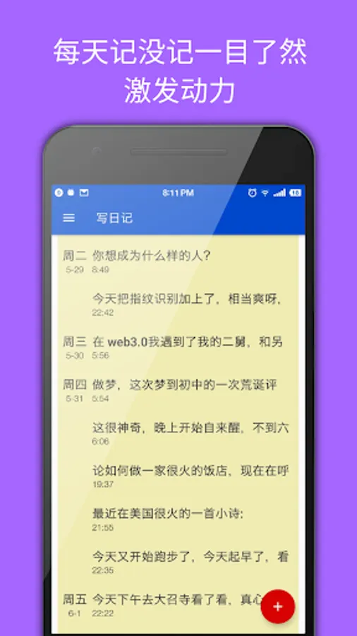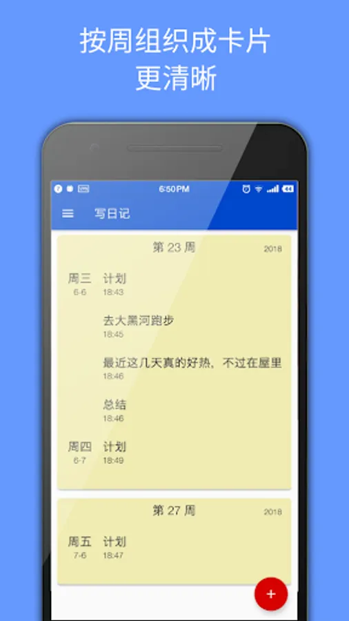 The elements of list is cards. One card one week. It's clear to present the daily records. If someday we din't record, we just know it but can't recover it. It is like life. We can't go back, we just go forwards. We just live today.