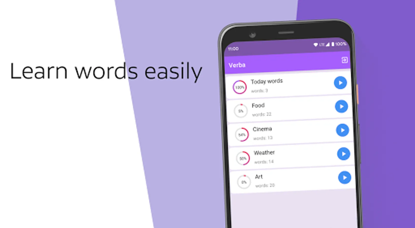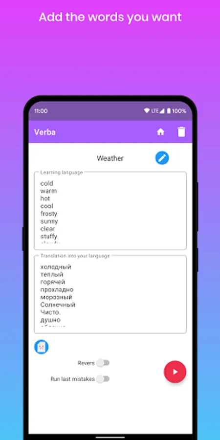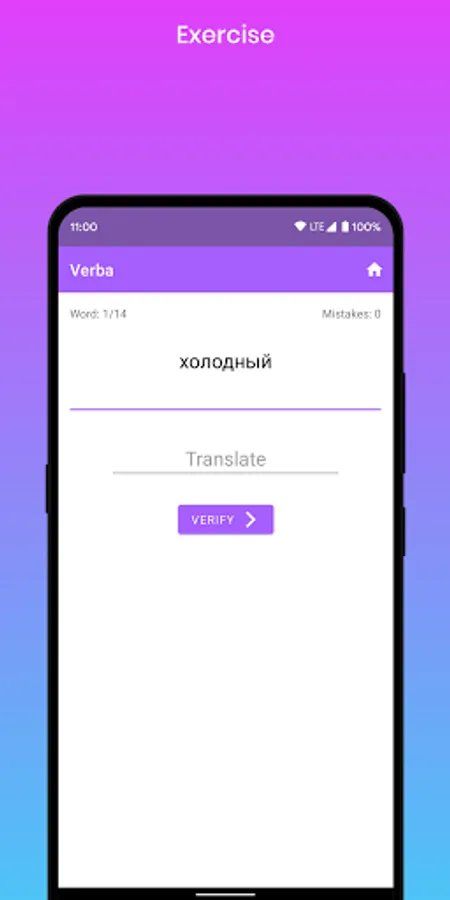The Verba application was created in order to provide users with the opportunity to conveniently learn the foreign words they need. Users can choose which words to learn and in which translation.