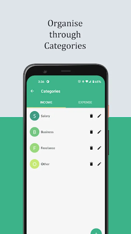 Organise your expenses and income by categories.