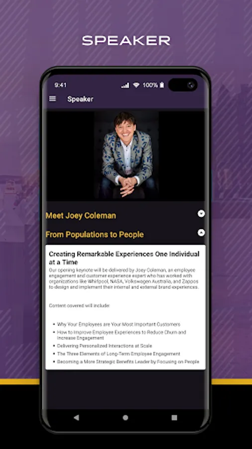 Access everything you need for EVOLVE-23 and stay connected throughout the event! Gain access to speakers, agenda, networking and more. Easily opt in for notifications and connect with us through our dynamic educational sessions. EVOLVE-23 will give you with actionable insights on how to effectively lead the charge in using benefits to improve and ensure employee trust, psychological safety, and physical wellness - all leading to happy, energized employees and successful organizations.
