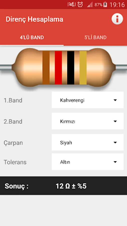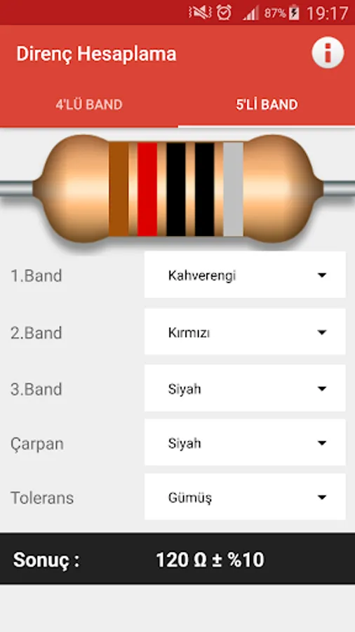 With this application, or 4-band color values by entering the application you can easily calculate that over the 5 band resistors.