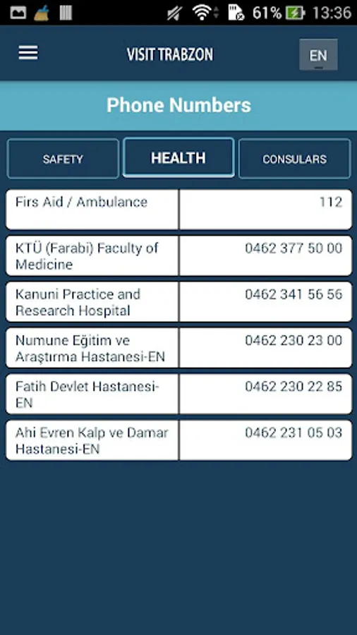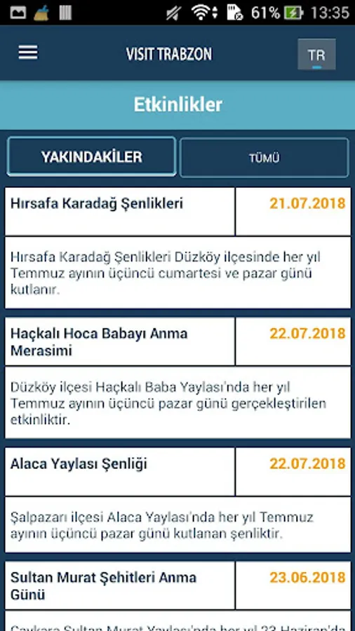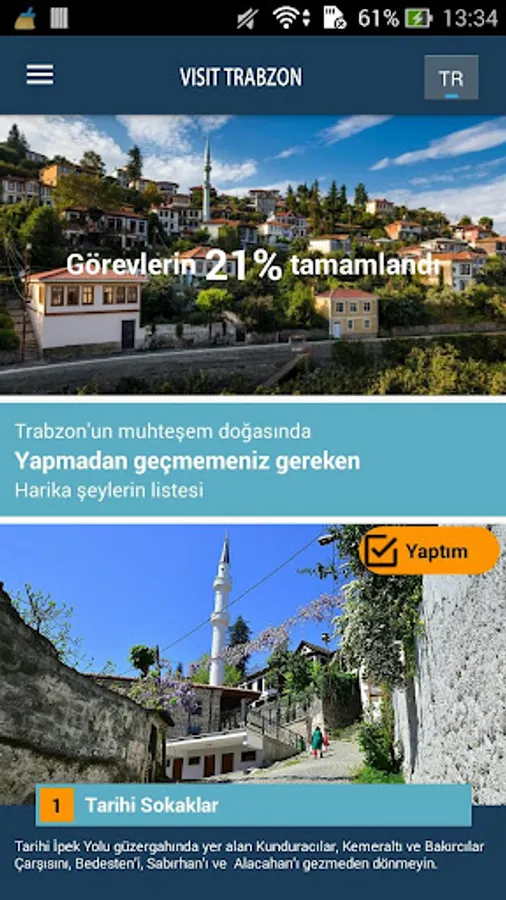 Visit Trabzon In mobile application, English / Turkish language conversion can be done by choosing from the top right language field.
