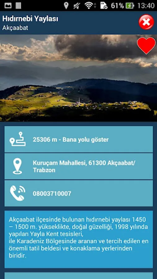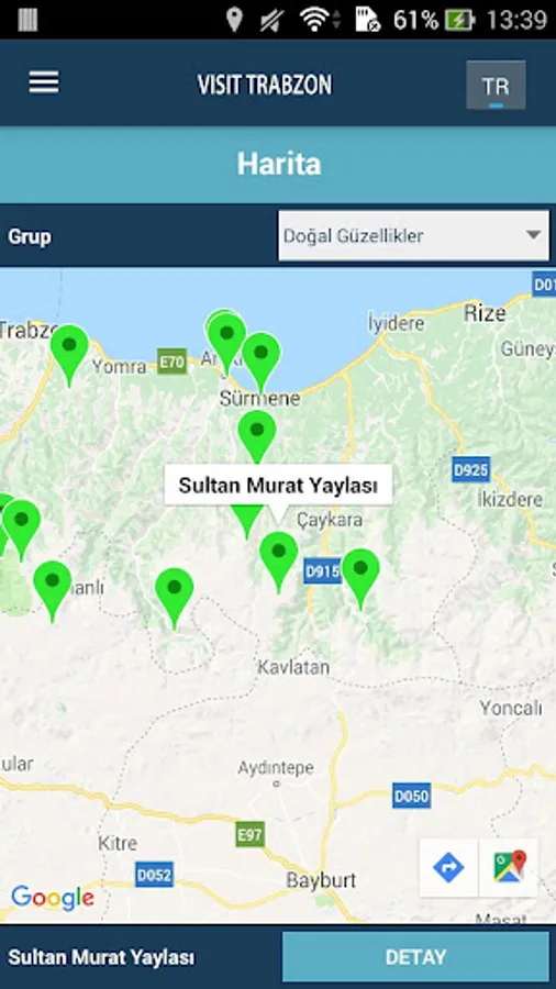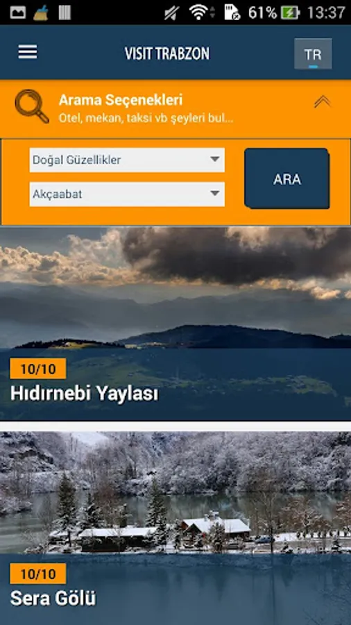 It helps to look for something in Trabzon. For example: "What are Natural Beauties in Akçaabat District?" The data are quickly listed with their visuals. Score information and star counts can also be displayed. When you touch it, it goes to the detail of the given.