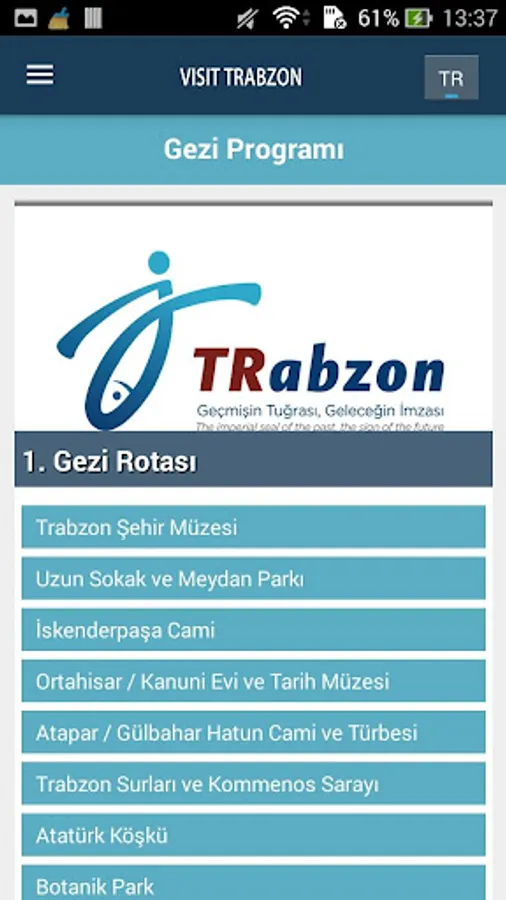 Visit Trabzon Application is a mobile application that guides tourists. Trabzon's natural beauties, places to eat, places to visit, historical places as a whole, offers tourists.