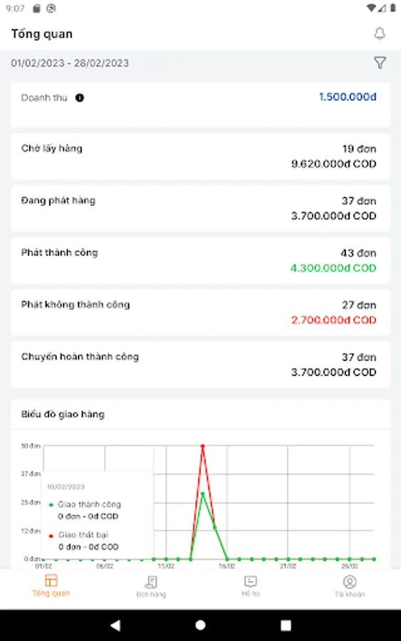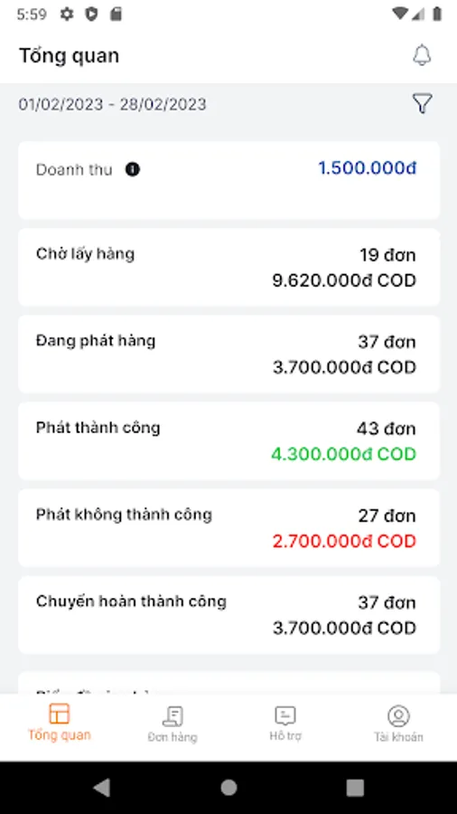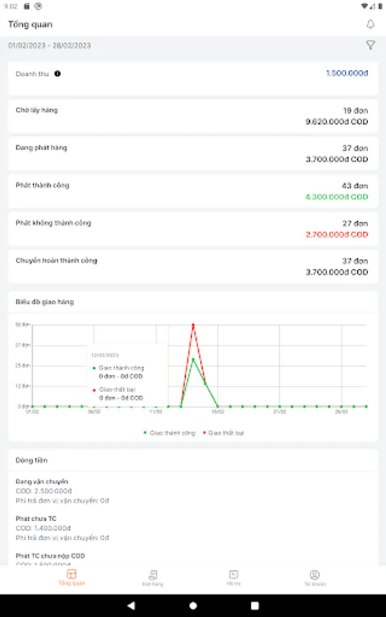 - COD cash flow statistics function.