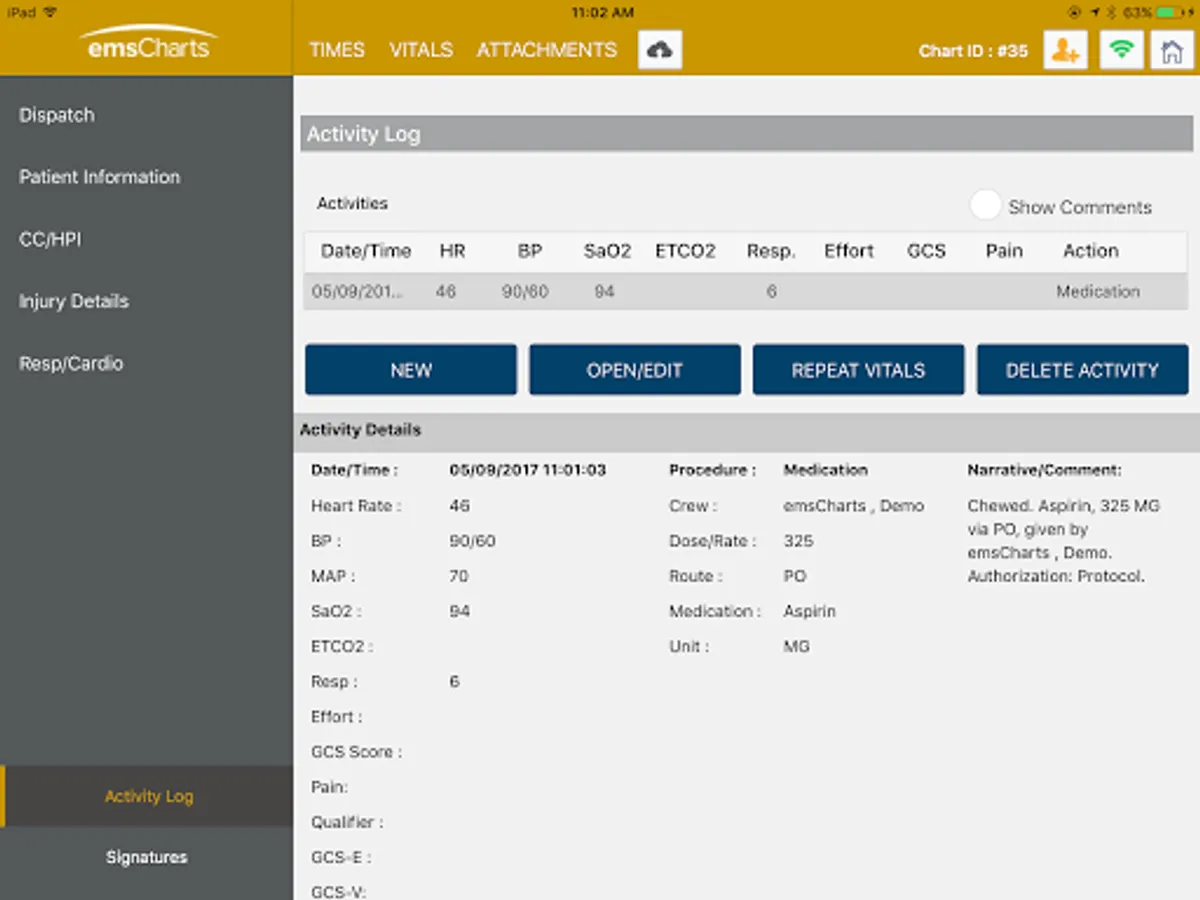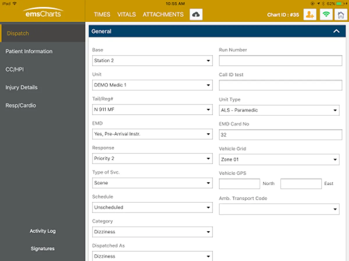 emsCharts Tablet is a native application that allows you to perform your pre-hospital charting with simple data entry, seamless offline functionality and unlimited free downloads. Improve compliance and increase productivity by capturing pertinent data with minimal implementation and maintenance. With emsCharts Tablet, you can focus on what matters most - patient care