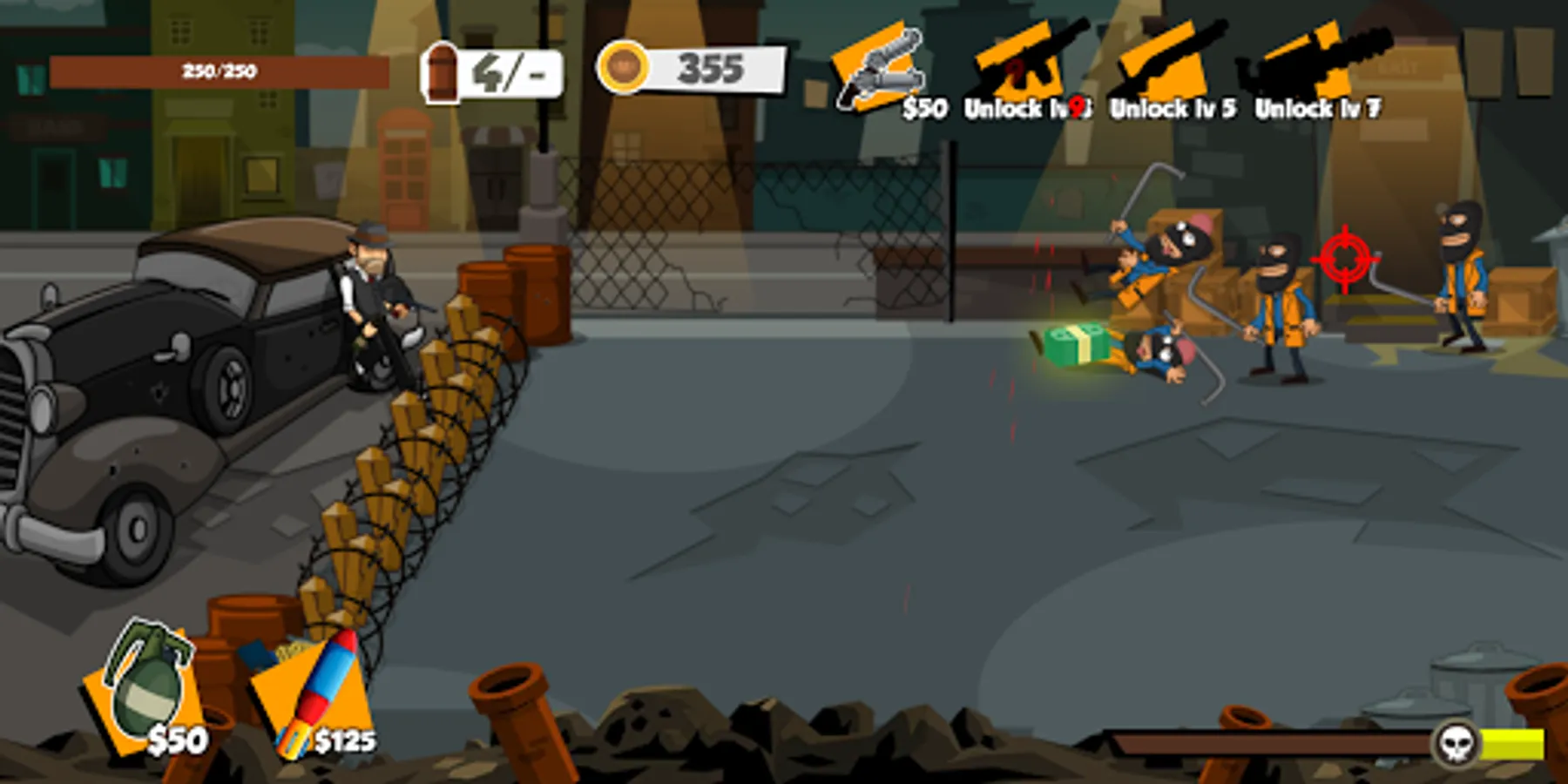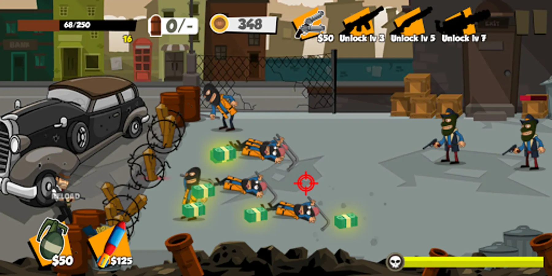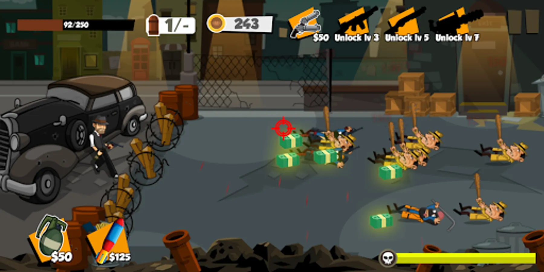 Gangster şehir savaşları oyununda kendi bölgenizi diğer gangster ve düşmanlara karşı savunmanız gerekiyor. Sağ kısımda beliren düşmanları birer birer avlayarak kendi bölgenize yaklaşıp size ulaşmasını engellemelisiniz. Birbirinden farklı silah ve aksesuarları kullanarak savaş gücünüzü yükseltebilir ve daha güçlü silahlar alabilirsiniz. Dikkat etmeniz gereken kısım ise düşmanları yok ettikten sonra paraları toplamayı unutmayın. Birbirinden zorlu bölümlerin sizi beklediği gangster şehir savaşları oyununu oynarken iyi eğlenceler dileriz.