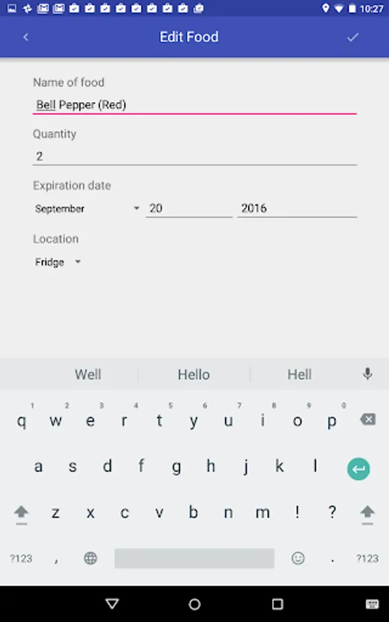 Tap added food to make any changes to the name, quantity, expiration date, or category/location.