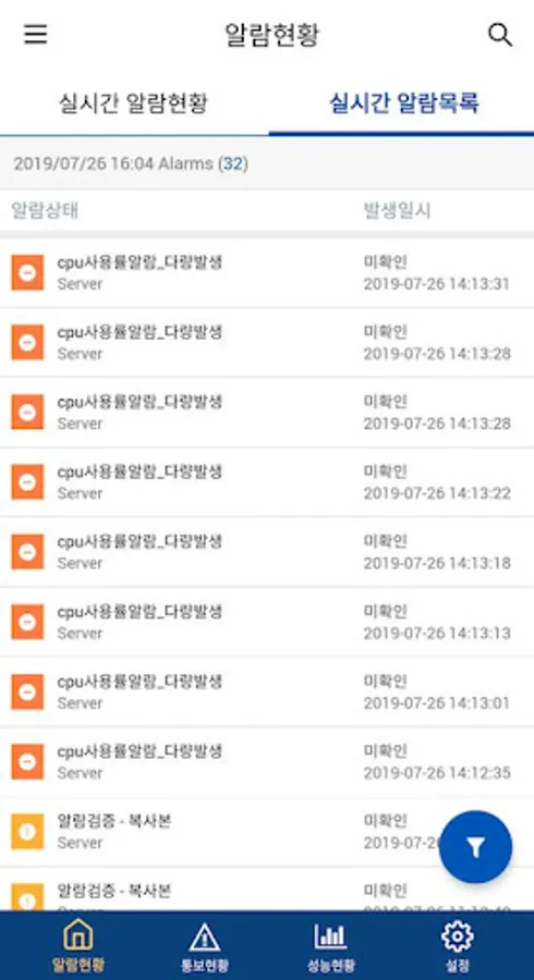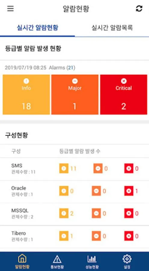 - Alarm Status: Alarm occurrence status by grade, and 3 sub-categories according to equipment