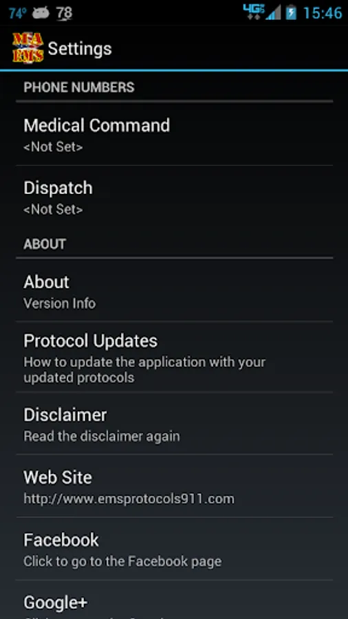 You are able to enter 2 phone numbers into the application. These numbers are meant to be for your medical command and dispatch numbers. You are able to call these numbers from inside this application.