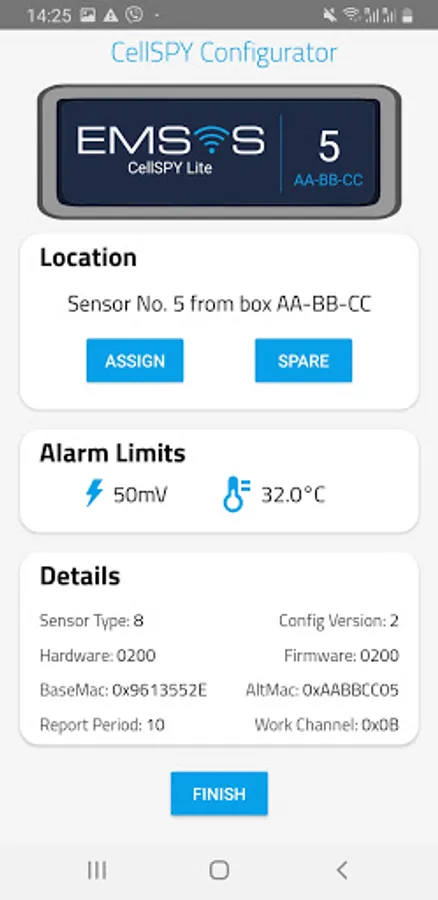 CellSPY Config allows you to check and modify configuration of your CellSPY Sensors. You can configure spare sensors to replace existing ones or even mark any existing sensor as spare.