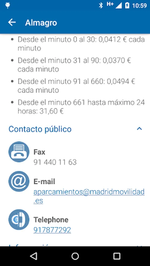 EMT Madrid’s Official application for knowing location and relevant information about public parkings in Madrid: Free spaces, timetables, services, contact information and more.